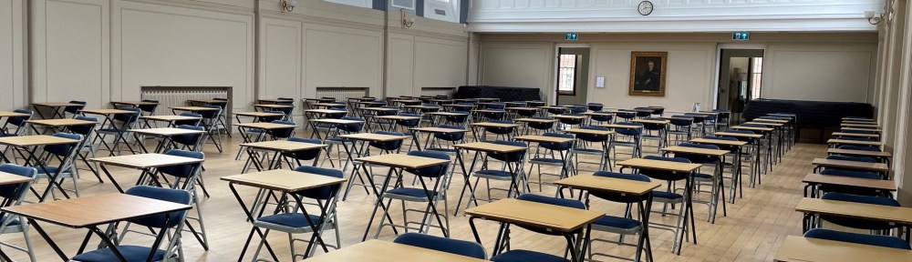 In schools across the land, the sports halls, gyms and assembly rooms have undergone their annual springtime metamorphosis. The Public Examination season is underway again. Desks have been lined up at regulation distance.  Institutional clocks have been synchronised.  Notices have been posted.  ‘Silence please – exams in progress’.